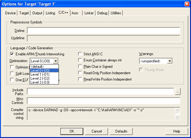 RealView MDK和ARM RVDS一样,也使用RealView编译工具。配置C/C++,汇编,连接器选项,以匹配以前的RVDS项目。