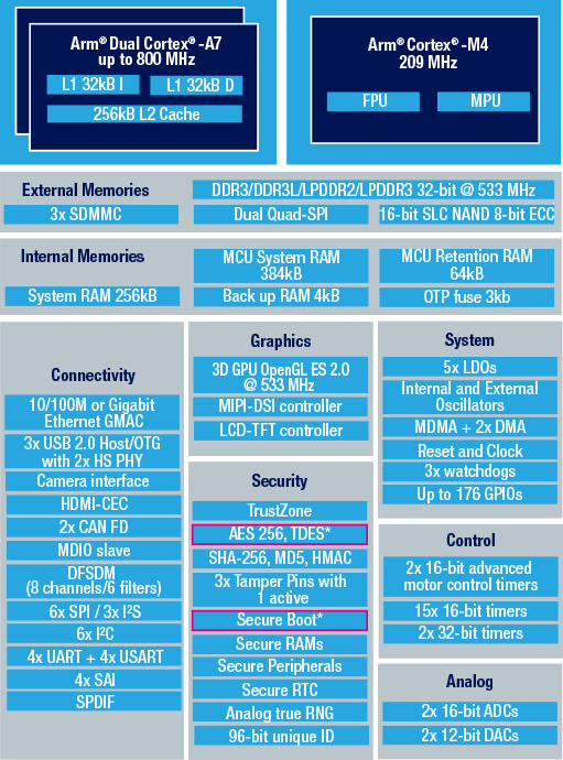 l ARM® Cortex®-A7 + Cortex-M4 异构多核 |