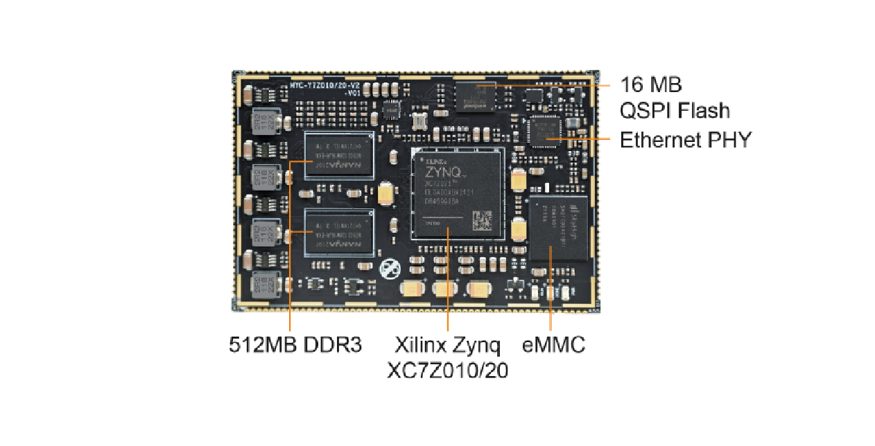 | MYC-Y7Z010-V2-4E512D-667-I | Xilinx Zynq-7010处理器 | 工业级:-40~+ 85℃ | 4G eMMC Flash | 512M DDR |